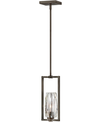 The Ana 1-Light Small Pendant in Black Oxide by Hinkley is a perfect blend of modern elegance and functional design. This pendant light features a sleek, rectangular frame finished in a sophisticated Black Oxide that adds a touch of contemporary charm to any space. The minimalist design is complemented by a beautifully crafted glass shade that encases the light bulb, creating a stunning visual effect when illuminated.