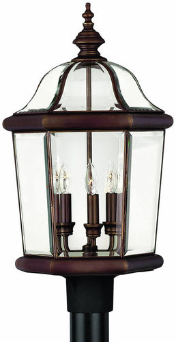 Elevate your outdoor lighting with the 23"H Augusta 3-Light Large Outdoor Post Lantern in Copper Bronze. Its combination of elegant design, durable construction, and versatile functionality makes it a must-have for any homeowner looking to enhance their outdoor spaces. Don't miss out on the opportunity to add this exquisite piece to your home decor. Order now and transform your outdoor areas into beautifully illuminated spaces that welcome you and your guests with warmth and style.