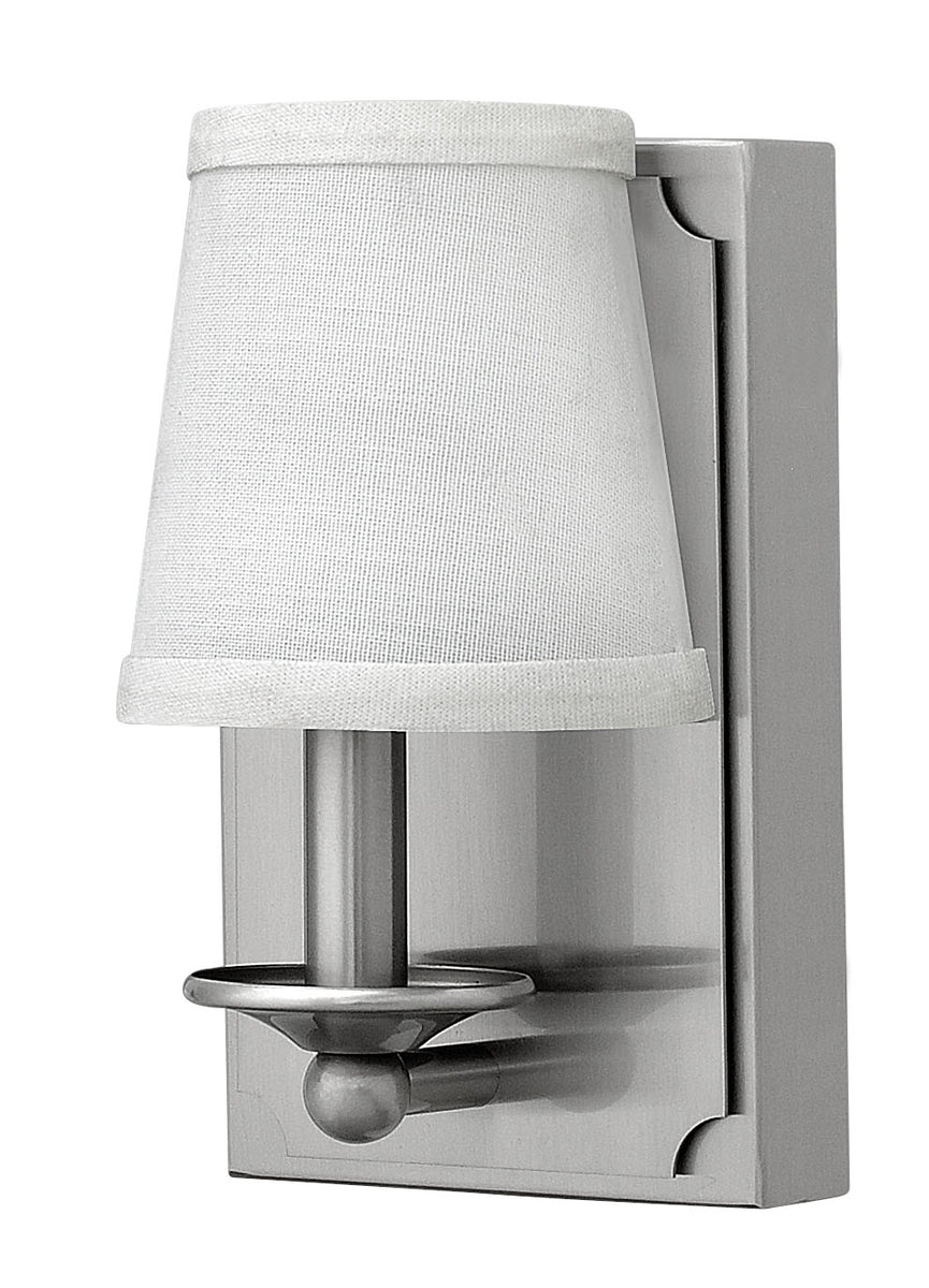 The 5"W Avenue 1-Light Sconce in Brushed Nickel is a perfect blend of modern sophistication and timeless elegance. The brushed nickel finish adds a sleek, contemporary touch to any room, while the clean lines and minimalist design ensure it complements a variety of decor styles. The sconce features a stylish fabric shade that diffuses light beautifully, creating a warm and inviting ambiance.
