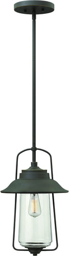 The 10" W Belden Place 1-Light Outdoor Pendant Light in Oil Rubbed Bronze by Hinkley is a perfect blend of stylish simplicity and nautical elegance. Crafted from durable solid aluminum, this pendant light features clean lines that offer a modern take on a vintage gas lantern. The oil-rubbed bronze finish adds a touch of sophistication, while the clear glass shade ensures maximum light output and a warm, inviting glow.