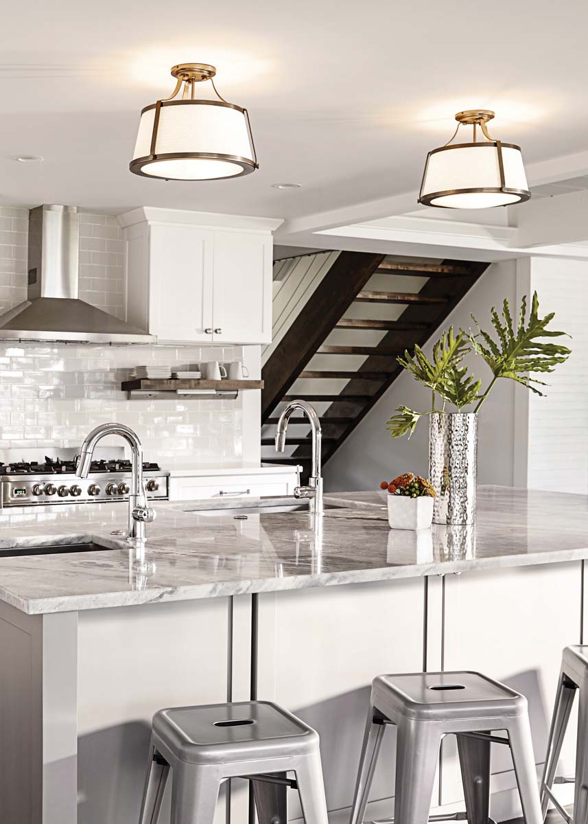 A semi-flush may need a little more ceiling height than a flush mount, but is often useful in a living or family room, bedrooms, a kitchen, a home office or in a basement. They also work well in hallways, bathrooms and smaller rooms.