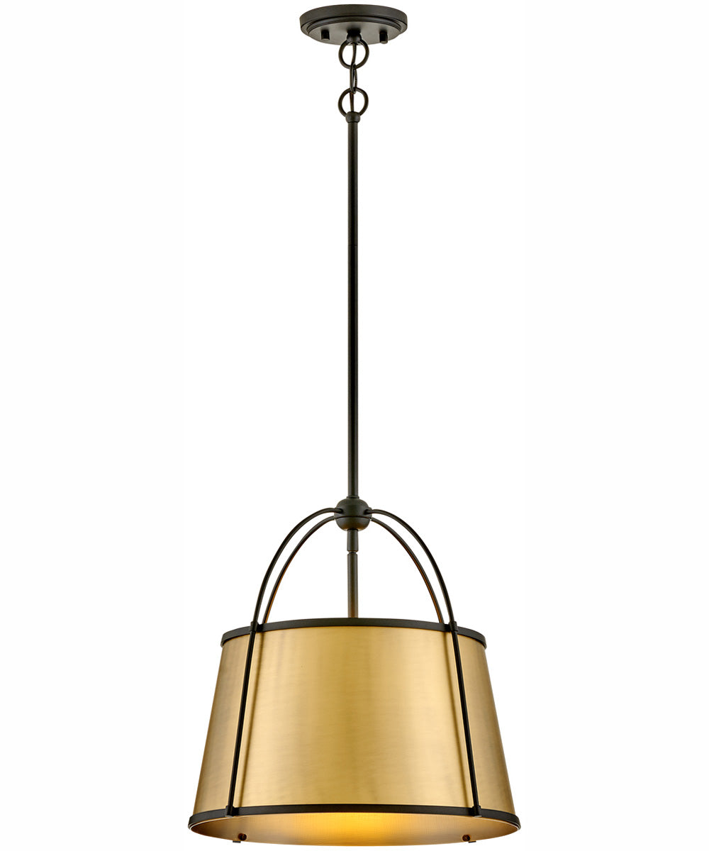 The Clarke 1-Light Medium Pendant in Black with Lacquered Dark Brass accents by Hinkley is a stunning addition to any space. This pendant light features a sophisticated design that combines modern elegance with timeless charm. The black finish, complemented by lacquered dark brass accents, creates a striking contrast that enhances the overall aesthetic appeal. Its sleek and stylish silhouette makes it a perfect fit for contemporary, industrial, or transitional room themes.