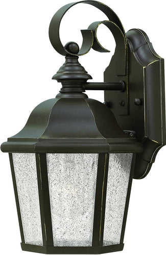 The 12"H Edgewater 1-Light Outdoor Wall Light in Oil Rubbed Bronze by Hinkley is a stunning addition to any home's exterior. This outdoor wall light boasts a classic design that effortlessly combines traditional elements with modern aesthetics. The oil-rubbed bronze finish adds a touch of sophistication, while the clear seedy glass shade provides a vintage charm. The intricate detailing and robust construction make it a standout piece that enhances the curb appeal of your home.