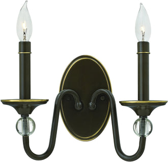 This 2-Light Wall Sconce by Hinkley features an/a Light Oiled Bronze finish. The Eleanor collection offers a classic traditional chandelier arrangement with graceful arms, elegant turnings and sleek candle sleeves. A glamorous center column constructed of solid crystal elements conveys modern sophistication.
