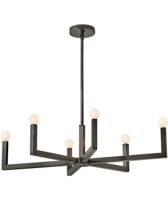 The Ezra 6-Light Linear Chandelier in Black Oxide by Hinkley is a stunning addition to any modern or contemporary space. This chandelier features a sleek, minimalist design with six lights arranged in a linear fashion, offering both style and functionality. The black oxide finish adds a touch of sophistication, making it a versatile piece that can complement various interior themes.