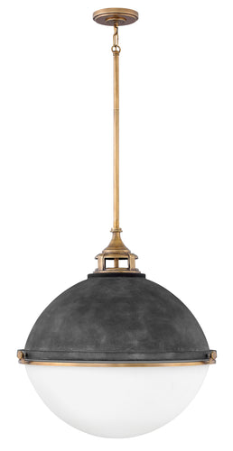 The 22"W Fletcher 3-Light Single Tier Pendant in Aged Zinc is a sophisticated lighting fixture that effortlessly blends vintage charm with modern elegance. The seamless dome shade, crafted from high-quality steel, showcases an aged zinc finish that adds a touch of industrial flair. The pendant's design is further accentuated by a cast-fitter and an elegant capture ring that secures the etched opal glass with decorative cast knobs. This unique combination of materials and finishes makes the Fletcher pendant a versatile piece that can complement a variety of interior styles, from classic to transitional.