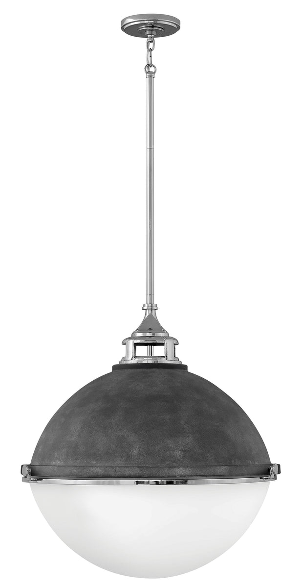 Hinkley 22"W Fletcher 3-Light Single Tier Pendant in Aged Zinc with Polished Nickel
