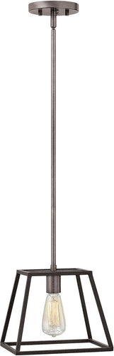 The 10" W Fulton 1-Light Mini Pendant in Aged Zinc is a stunning example of minimalist beauty, emphasizing the concept that ‘less is more’. This pendant light features a clean, airy design with a tapered cage that exudes vintage industrial style. The absence of glass in its construction adds to its minimalist appeal, while the unique square candle sleeves rest on a discreet “H”-shaped cluster, creating a striking visual effect. The aged zinc finish lends a rustic yet contemporary touch, making it a versatile addition to any room.