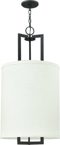 This 3-Light Chandelier by Hinkley features an/a Buckeye Bronze finish. Hampton is a modern transitional design, offering the ultimate in urban sophistication. The minimal rectangular frame, paired with a decorative acrylic etched bottom lens, is softened by a contemporary off-white linen drum shade.