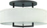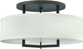 This 3-Light Semi Flush Mount by Hinkley features an/a Buckeye Bronze finish. Hampton is a modern transitional design, offering the ultimate in urban sophistication. The minimal rectangular frame, paired with a decorative acrylic etched bottom lens, is softened by a contemporary off-white linen drum shade.