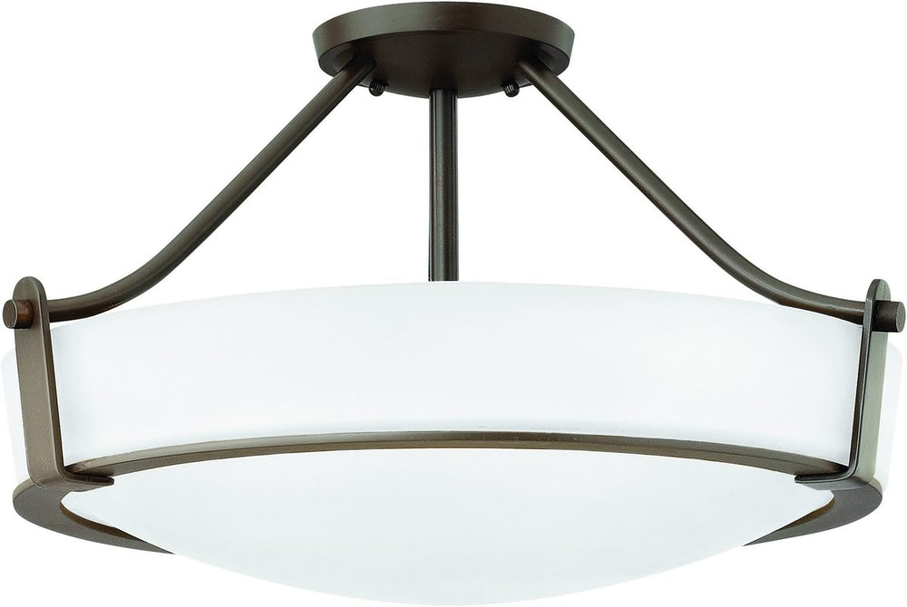 This 4-Light Chandelier by Hinkley features an/a Olde Bronze finish. Hathaways striking design features a bold shade held in place by three intersecting, floating arms with unique forged uprights and ring detail for a modern style. Available in Antique Nickel with etched glass, Olde Bronze with etched glass, or Olde Bronze with etched amber glass.