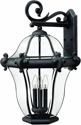 The 26"H San Clemente 4-Light Extra-Large Outdoor Wall Lantern in Museum Black is a stunning addition to any exterior space. This exquisite lantern is part of the renowned San Clemente Collection by Hinkley Lighting, known for its timeless elegance and superior craftsmanship. The lantern features a classic design with a sophisticated Museum Black finish that exudes a sense of luxury and refinement. The cast aluminum ornaments and bound, bent, and beveled clear glass panels add a touch of grandeur, making it a perfect choice for enhancing the aesthetic appeal of your outdoor areas.