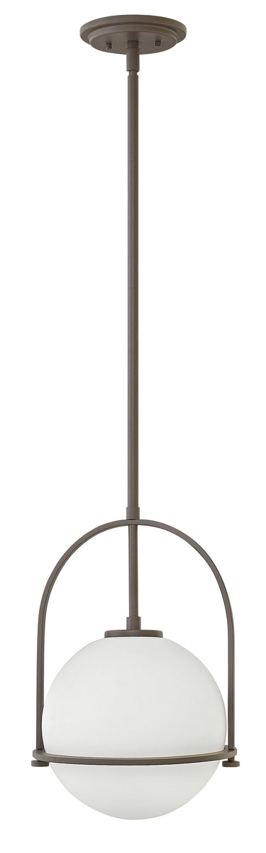 The 12"W Somerset 1-Light Stem Hung Pendant in Buckeye Bronze is a true embodiment of chic elegance and sophisticated design. This pendant light seamlessly blends modernity with a touch of vintage appeal, making it a versatile addition to any interior decor. The etched opal glass globe is gracefully suspended within a streamlined metal yoke and ring, creating a striking visual contrast that enhances its aesthetic appeal. The understated turned metal knobs add an authentic edge, giving this fixture a distinctive character.