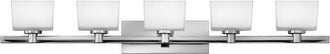 This 5-Light Halogen Taylor Bath Vanity finished in Chrome and complemented in a White Glass by Hinkley enhances any bathroom with stylish decoration