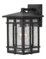 The Tucker wall light features a study in symmetry with its clean, geometric lines and well-proportioned dimensions. Standing at 11.5 inches in height and 7 inches in width, this fixture is designed to make a statement without overwhelming your outdoor space. The clear seedy glass panels not only enhance the rustic lodge aesthetic but also diffuse the light beautifully, creating a warm and inviting ambiance.