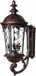 This exquisite outdoor wall lantern stands at an impressive height of 25.5 inches, with a width of 9.5 inches and a depth of 12 inches, making it a substantial and eye-catching fixture. The back plate measures 5.75 inches wide by 12 inches high, ensuring a secure and stable installation. Positioned 13 inches from the top to the outlet, the lantern offers optimal lighting coverage. It accommodates three 40-watt candelabra bulbs (not included), providing a warm and inviting glow to your outdoor spaces. Operating at 120 volts, this lantern is both efficient and effective in illuminating your home’s exterior.