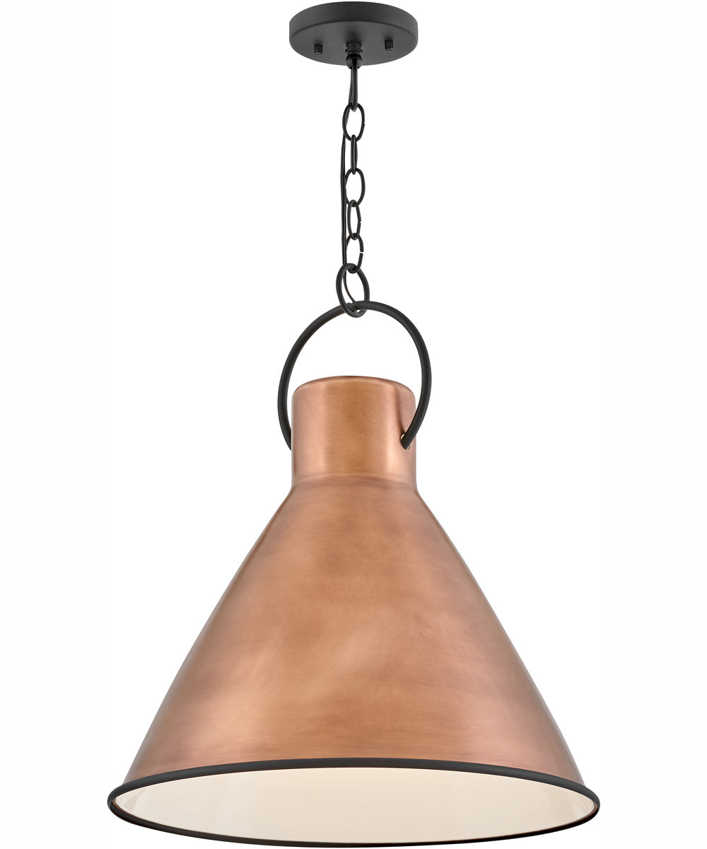 The Winnie 1-Light Medium Pendant in Antique Copper by Hinkley is a stunning addition to any space, offering both functionality and aesthetic appeal. Its sleek, conical shape exudes a modern yet timeless charm that seamlessly blends with various interior styles. The pendant's design features a smooth, tapered shade that directs light downward, creating a focused and inviting illumination.