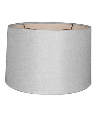 A drum lamp shade resembles a barrel or drum shape. The sides of the shade are completely vertical, or near to. They go straight up and down, which means the top and bottom of the drum lampshade are usually about the same size. This produces a somewhat more modern look, and equal amounts of light may emit out the top and bottom of the shade. Due to its cylinder shape, the shade easily allows bulb heat to escape. A cylindrical drum shade coordinates well with modern lamp bases or a base with a clean profile.