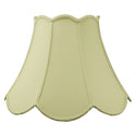A bell-shaped lampshade has a fluted design and curved sides, similar to the shape of a bell. The gentle curves can be aesthetically pleasing. The wider bottom helps more light to spread out downwards and sideways, such as for reading or nearby activities. The smaller top helps to funnel bulb heat away from the lamp. Bell shades coordinate well with a lamp base featuring a curved surface or profile.