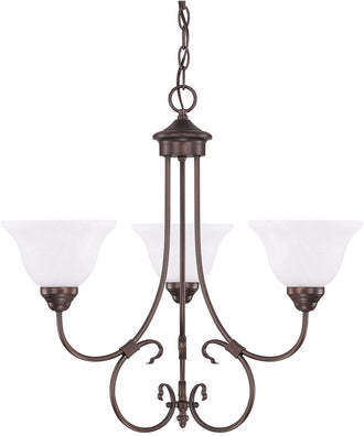 The Hometown 3-Light Chandelier in Bronze is a stunning addition to any home, offering a blend of traditional elegance and modern sophistication. Its graceful curves and exquisite detailing make it a standout piece that enhances the aesthetic appeal of any room. The chandelier features a rich bronze finish that exudes warmth and luxury, while the white glass shades provide a soft, diffused light that creates a welcoming ambiance.