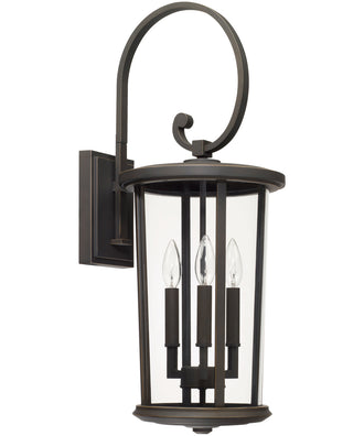 The Howell 3-Light Outdoor Wall Mount is a stunning addition to any exterior space, combining timeless elegance with modern durability. Featuring an Oiled Bronze finish, this outdoor wall lantern exudes a classic charm that complements various architectural styles. The clear glass encasement showcases the three candelabra-style lights within, creating a warm and inviting ambiance for your home's exterior.