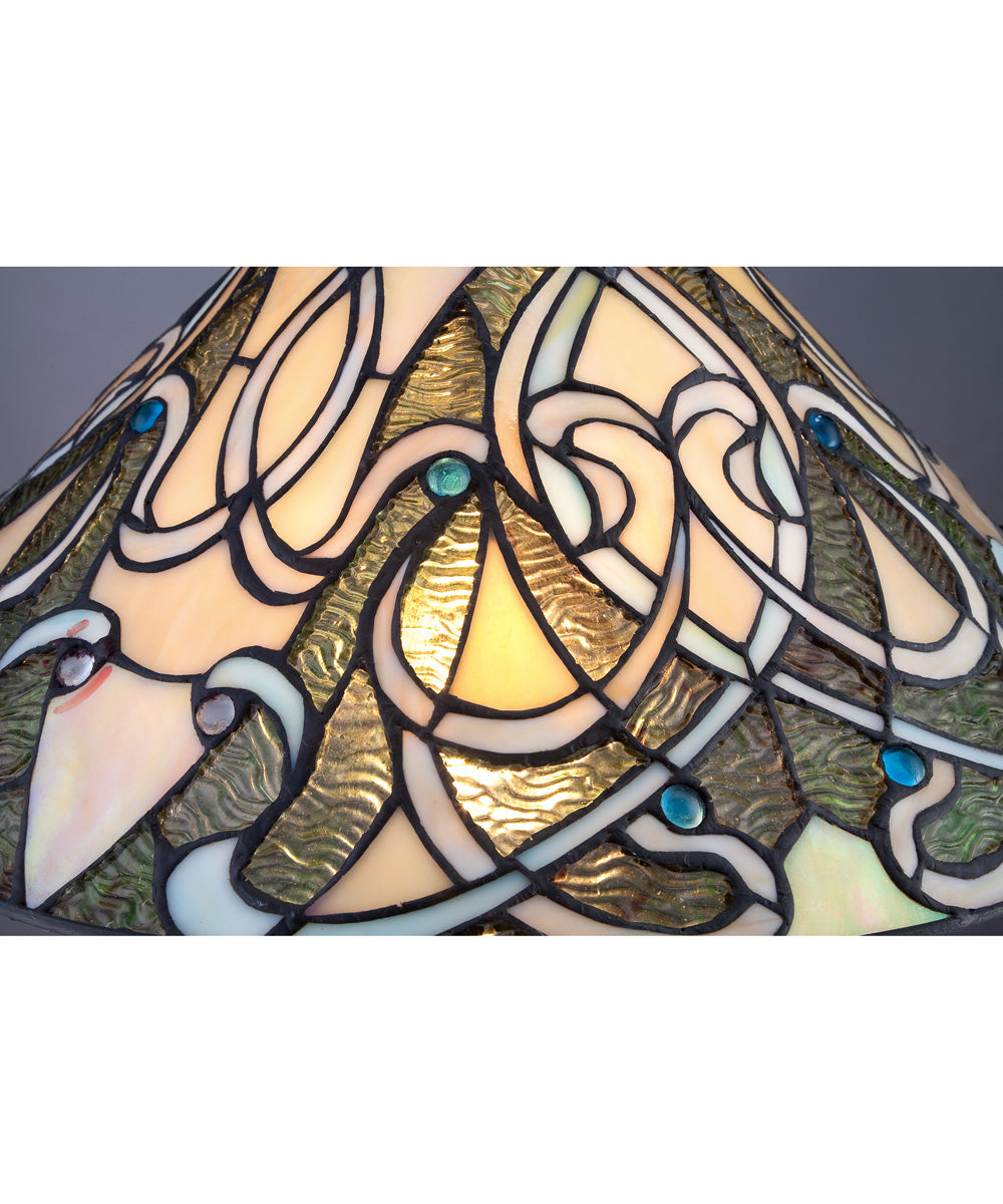 • Shade contains 282 pieces of Tiffany glass. Glass color in Tiffany lighting products vary in color. No two pieces are identical.