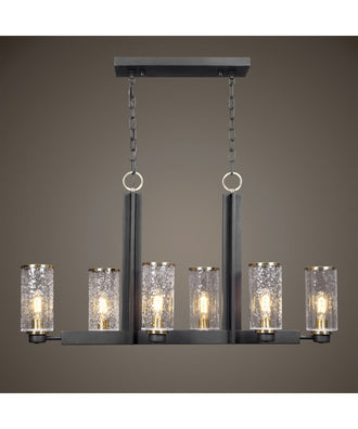 Refined Industrial With Clean Lines On Our 6 Lt. Island Features A Sanded Black Finish On The I-beam Style Frame With Refined Antique Brass Accents And Clear Meteor Shower Glass Shades. With 6-60 Watt, Max Edison Sockets And Includes 6-40 Watt T10, Clear Bulbs. Supplied With 20' Wire And 7' Chain For Adjustable Installation.Uttermost's Light Fixtures Combine Premium Quality Materials With Unique High-style Design.With The Advanced Product Engineering And Packaging Reinforcement, Uttermost Maintains Some Of The Lowest Damage Rates In The Industry. Each Product Is Designed, Manufactured And Packaged With Shipping In Mind.