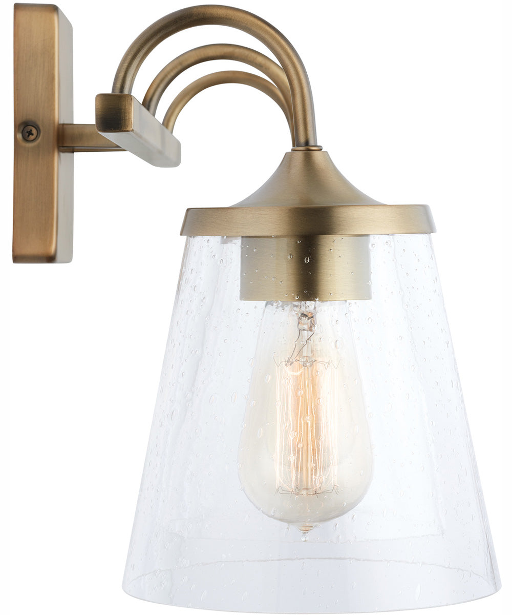 The wide cone seeded glass on this 3-Light Vanity is suspended by a simple arched arm and tapered metal cap makes it a timeless shape for any bathroom vanity.
