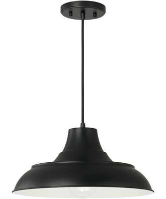 Inspired by antique warehouse shades, the Jones 1-Light Pendant gives a modern update to the iconic style. The contrast of the powder coated Matte Black finish and white shade interior makes this fixture playful without overpowering a space.