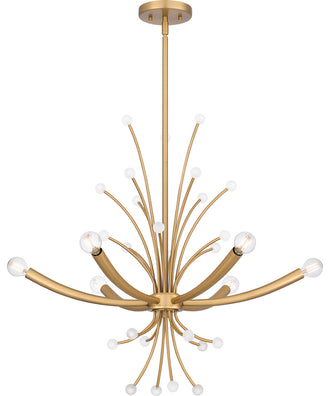 With its futuristic design, the Kiera chandelier is a perfect fit for modern and contemporary interiors. The chandelier's unique shape, with its curving arms and spherical accents, creates a dynamic visual effect that draws the eye and adds a sense of movement to the space. The brushed weathered brass finish enhances the overall aesthetic, offering a warm, inviting glow that complements a variety of color schemes and decor styles.