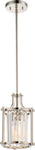 The 8"W Krys 1-Light Pendant in Polished Nickel by Nuvo Lighting is a stunning addition to any home or office space. This exquisite pendant light features a sleek, polished nickel finish that exudes sophistication and modern elegance. The crystal material adds a touch of luxury, creating a captivating visual effect as the light reflects and refracts through the crystal facets. The pendant's cylindrical shape and clean lines make it a versatile piece that can complement various interior design styles, from contemporary to traditional.