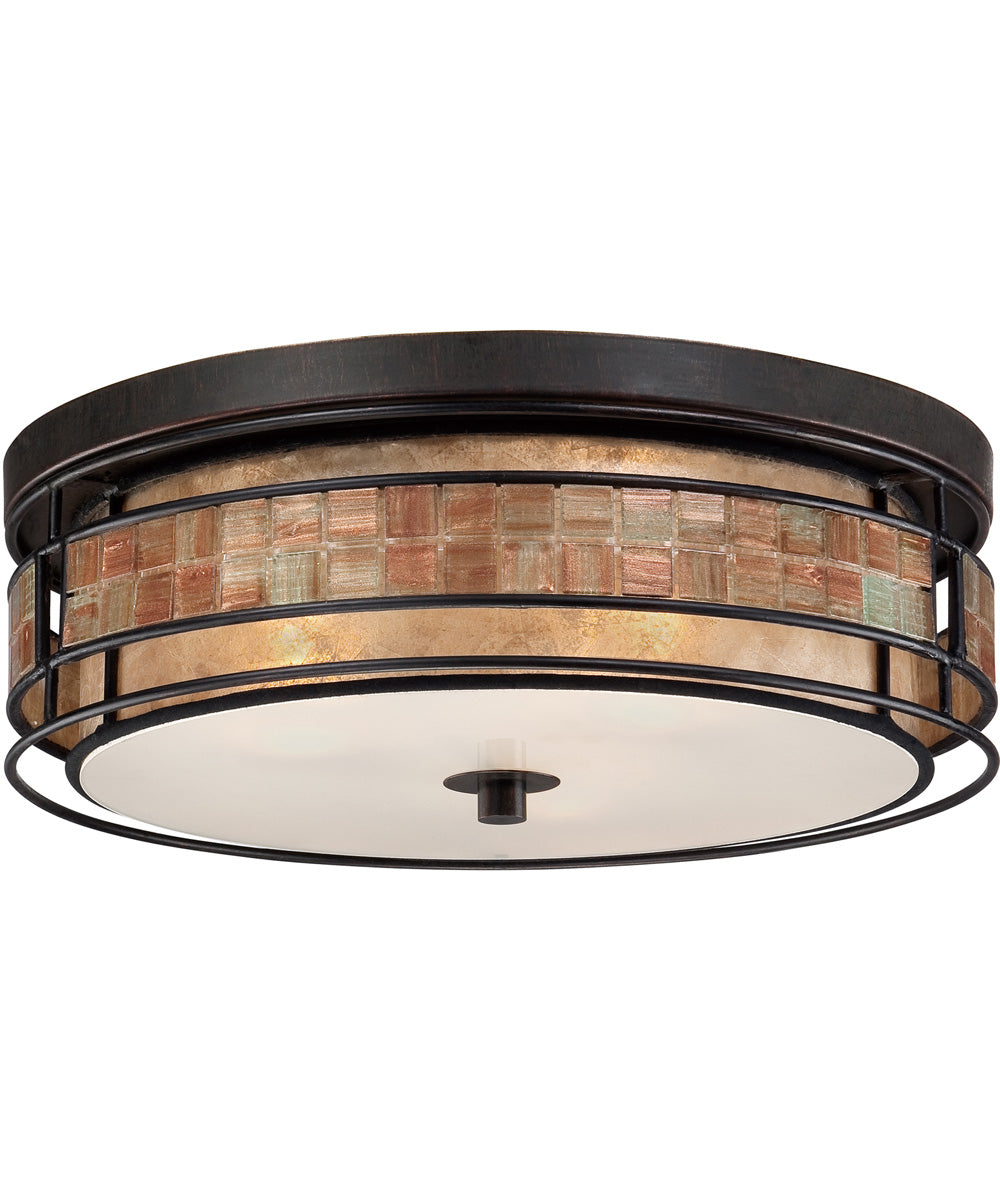 This mica piece is an addition to the Quoizel Naturals collection and features a mosaic tile stripe which appears to be floating around a taupe mica shade. The tiles have a coppery shimmer for an added touch of elegance. It provides a warm and inviting accent for most any home.