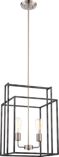 The 14"W Lake 2-Light Pendant in Iron Black with Brushed Nickel Accents is a stunning addition to any space. This pendant light features a contemporary square design that effortlessly blends modern aesthetics with classic elegance. The iron black finish combined with brushed nickel accents creates a striking contrast, adding depth and sophistication to the fixture. The geometric shape of the pendant provides a clean and structured look, making it an ideal centerpiece for various room themes.
