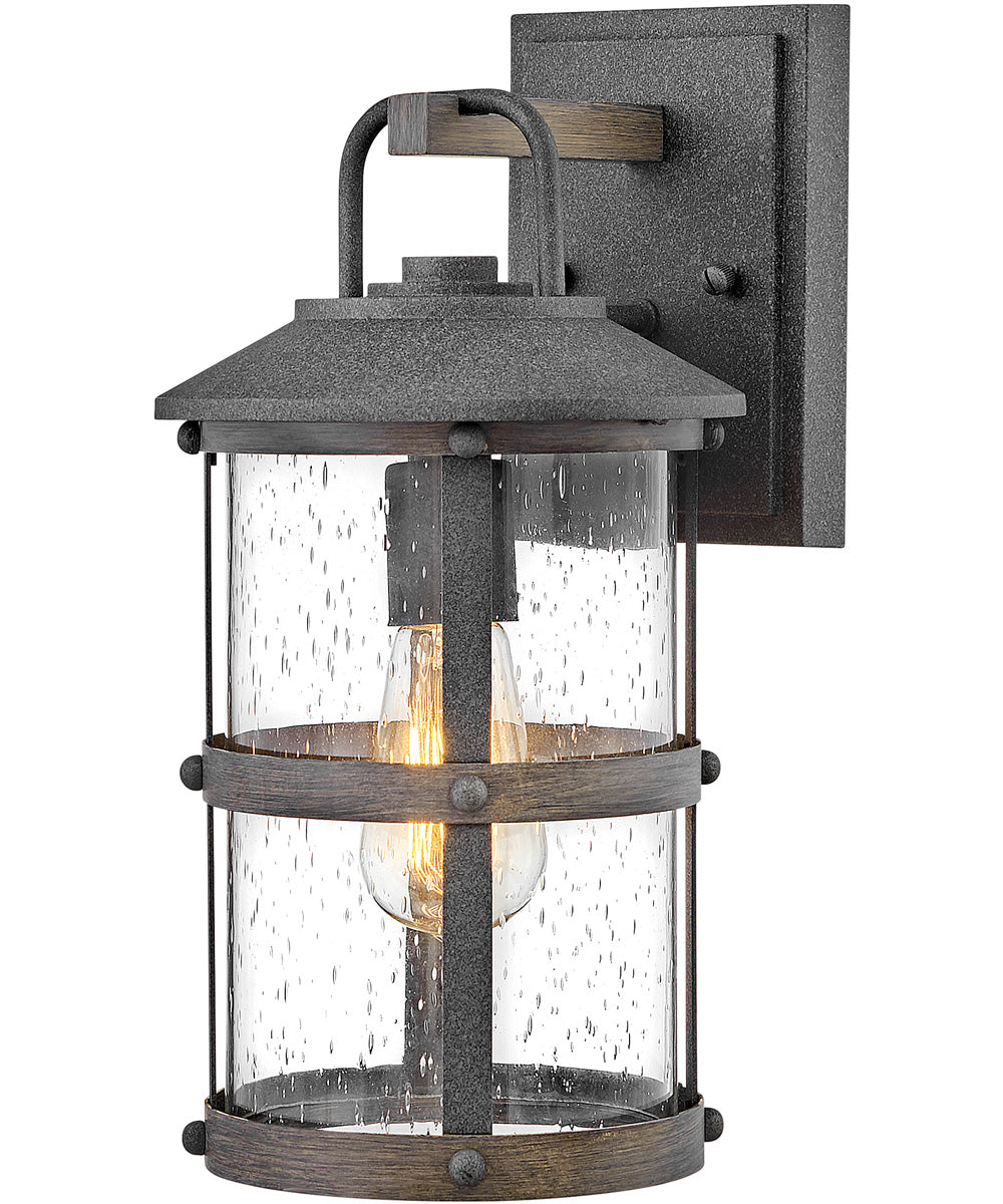 The Lakehouse 1-Light Small Outdoor Wall Mount Lantern seamlessly blends with different outdoor themes. Whether you are aiming for a rustic, coastal, or farmhouse look, this lantern will complement your décor beautifully. Its aged zinc finish and clear seeded glass add a touch of sophistication, making it a focal point in your exterior design.