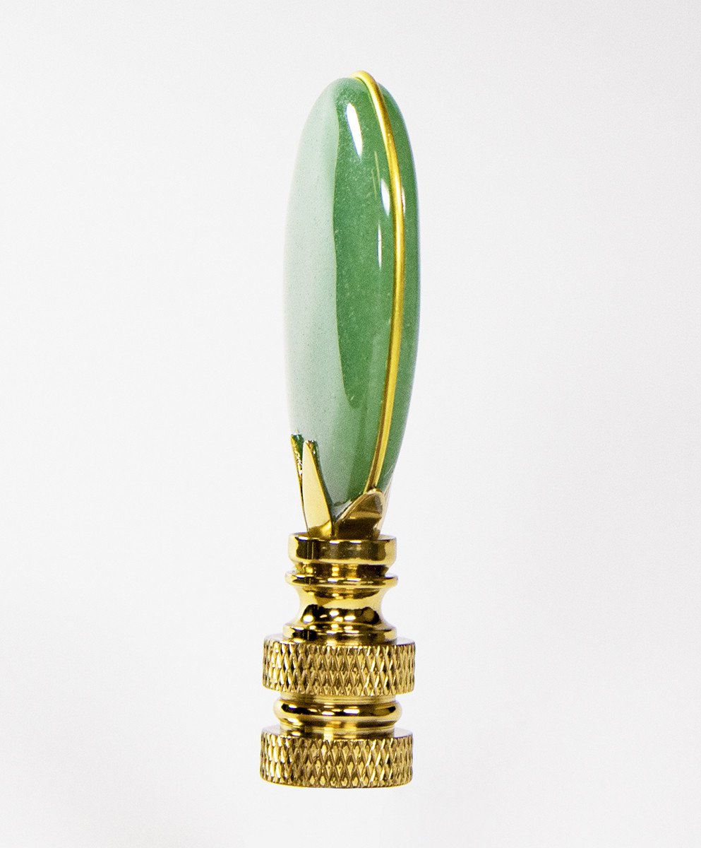 A new lamp finial is the perfect way to complete your new or favorite lamp. Quality finial that is sure to dress up your tired lamp. Finials have a standard 1/4"-27 thread, which will fit the harp on almost every lamp. (This means the opening is 1/4" wide and there are 27 threads per inch.) 95% of all lamp harps will fit this finial. Finial measures 2.5" height and 1.25" width. Material: Green Aventurine Stone Polished Base finish with Polished Base.