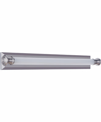 The versatile damp rated Langston Collection featuring white frosted glass captured LED lighting that illuminates the long, narrow brushed nickel backplate, is equally at home in a bathroom, bedroom, bunkbed, library, kitchen or any space that requires an energy efficient light and can be installed vertically or horizontally.