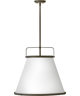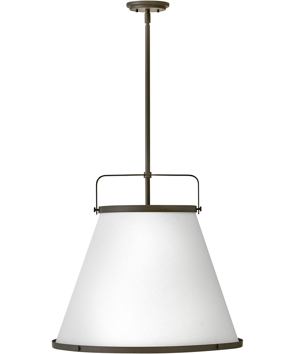 The Lark 3-Light Large Pendant in Oil Rubbed Bronze by Hinkley is a stunning addition to any home or office. Its sophisticated design features a sleek, conical shape that exudes elegance and modernity. The pendant's oil-rubbed bronze finish adds a touch of vintage charm while maintaining a contemporary appeal, making it a versatile piece that complements various interior styles.