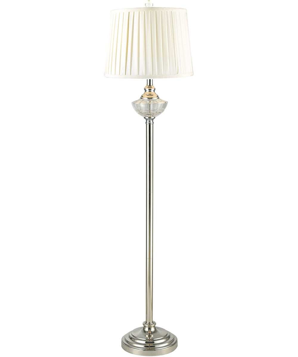 Our Leyla 24% Lead Crystal Floor Lamp's sleek contemporary lines will complement the decor in any room of your home. The stately fixture features a metal base that is beautifully finished in gleaming Polished Nickel. A magnificent 24% lead crystal urn near the top of the center column is faceted in a bold pattern that will shimmer with sparkles when Leyla is illuminated. The fixture features a large, graduated round pedestal for stability and contoured vase cap, both finished in matching Polished Nickel. We topped Leyla with an elegant hardback fabric drum shade for stability and added a solid orb crystal finial to complete the look. A perfect choice next to a favorite reading chair or comfortable sofa, our Leyla 24% Lead Crystal Floor Lamp is wired to accept a maximum 150W 3-way bulb (bulb not included) making it powerful enough to provide whole room light you will enjoy for years to come.