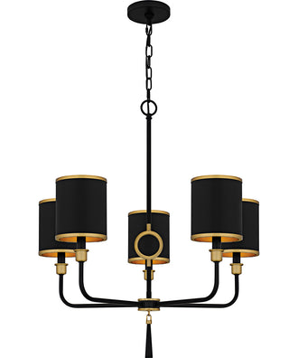 The Lockery 5-light Chandelier in Matte Black is a stunning addition to any home, combining traditional style with a contemporary twist. This chandelier features a sleek matte black finish that effortlessly complements any decor, while the striking gold interiors of the metal shades enhance light output and create a warm, inviting glow. The classic design and refined details make it a versatile choice for various interior settings, adding a touch of elegance and sophistication.