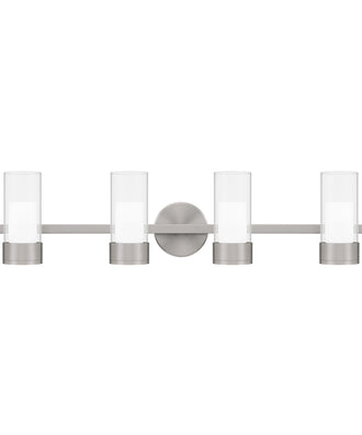 The simple yet classic silhouette of Logan exemplifies understated elegance. Cylindrical shades are comprised of a clear glass that is sandblasted on the inside, emitting a soft and spa-like glow. The Brushed Nickel finish makes these bath lights perfect for a variety of traditional and transitional settings. Choose from one, two, three, or four lights in this versatile collection to upgrade your bathroom lighting today.