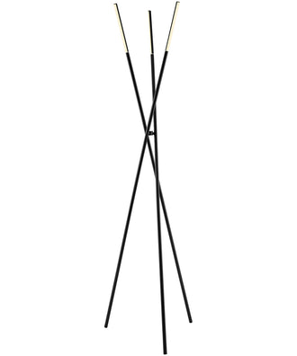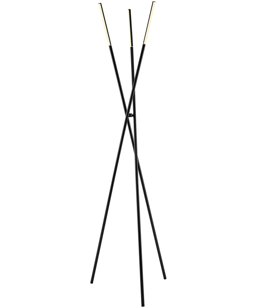 The Lorant floor lamp boasts a unique design characterized by its three slender, intersecting poles that create a visually appealing tripod structure. Each pole is topped with an integrated LED light, providing a minimalist yet impactful lighting solution. The black finish enhances its contemporary aesthetic, making it a versatile piece that seamlessly blends with both modern and transitional décor themes.