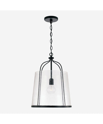This pendant light complements a wide range of room themes and styles. Its clean lines and modern design make it suitable for contemporary and minimalist interiors, while the classic shape and matte black finish allow it to blend seamlessly with traditional and industrial decor. The seeded glass adds a touch of vintage charm, making it a great addition to farmhouse and rustic-themed spaces. Whether your home features modern, traditional, or eclectic decor, the Madison Pendant will enhance the overall aesthetic and provide functional lighting.