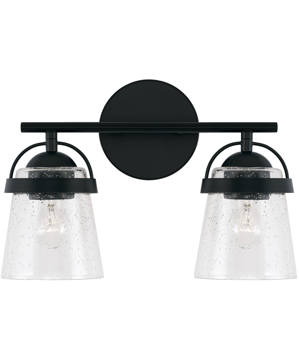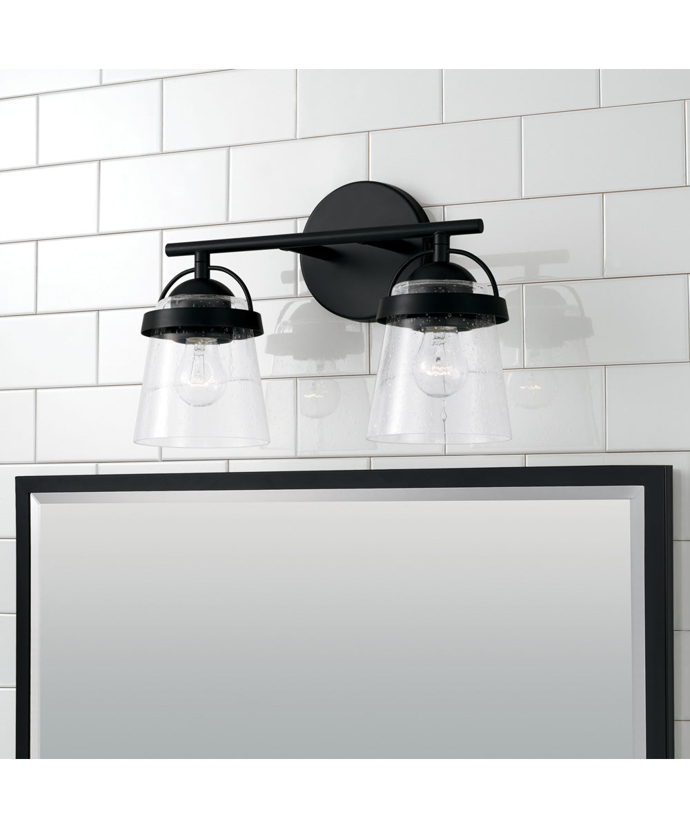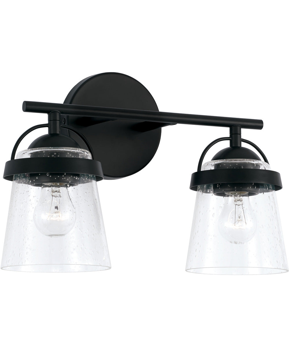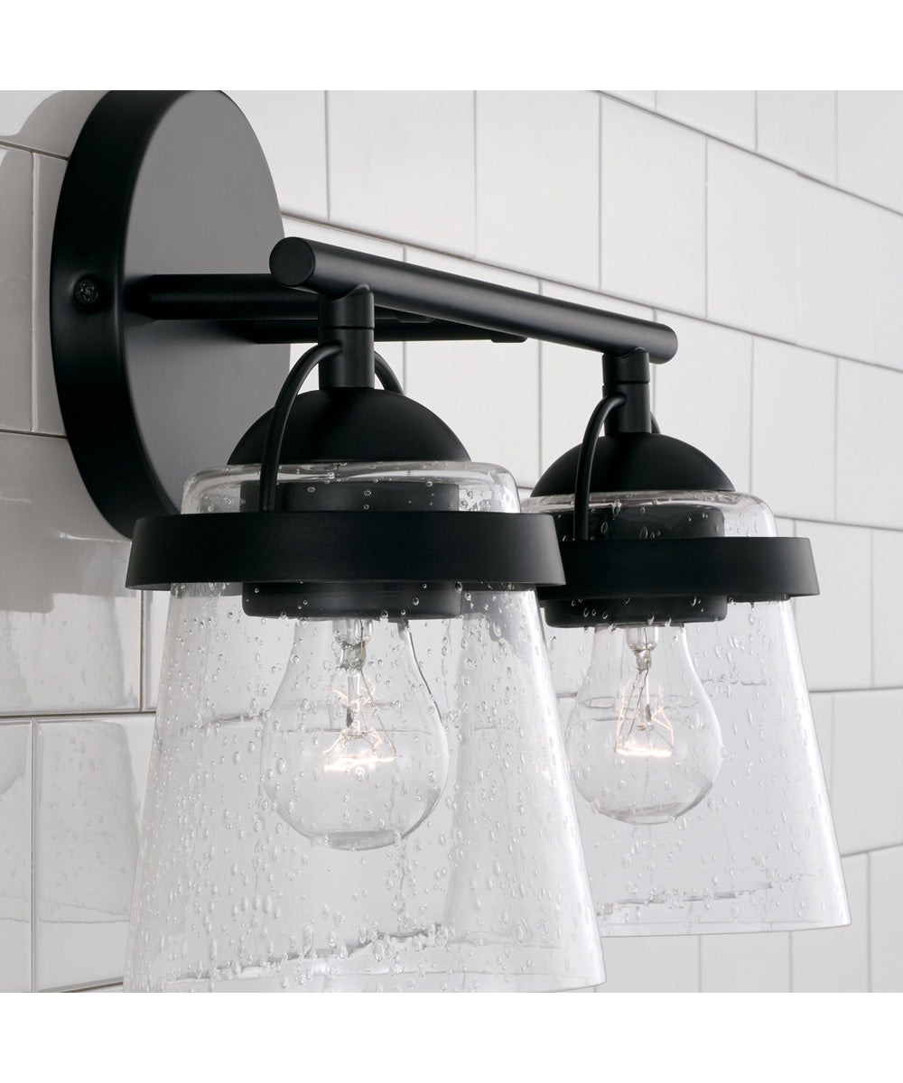 Chic curves and clean lines create the Madison 2-Light Vanity for Homeplace. The Matte Black finish adds dimension and accents the seeded glass for standout style. Also available in 3-Light and 4-Light.