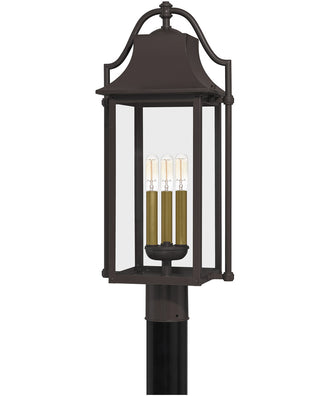 The Manning Large 3-light Outdoor Post Light is a perfect blend of traditional charm and modern durability. Crafted from Coastal Armour Aluminum, this outdoor post light features a stunning Western Bronze finish that exudes a classic, old-world appeal. The lantern-style design, reminiscent of vintage gaslights, adds a touch of nostalgia to any outdoor space. The clear glass panels provide an unobstructed view of the interior, showcasing the weathered brass candelabra sleeves that enhance its dual-tone look.