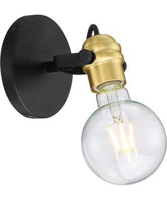 Introducing the 5"W Mantra 1-Light Vanity & Wall fixture, a stunning piece from Nuvo Lighting that effortlessly combines modern design with timeless elegance. This wall sconce features a sleek black finish with brushed brass sockets, making it a versatile addition to any room in your home or office. Crafted from durable steel, this fixture is built to last while providing a stylish accent to your décor.