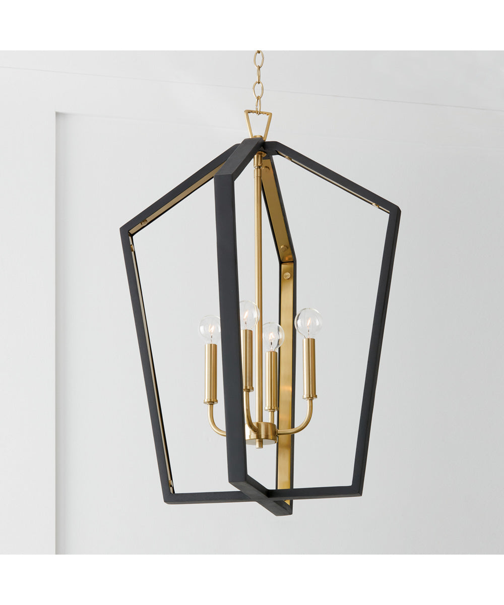 Transform your home with the Maren 4-Light Pendant in Flat Black and Matte Brass. Its elegant design, high-quality construction, and versatile style make it a must-have for any discerning homeowner. Illuminate your space with this stunning pendant light and enjoy the perfect blend of form and function. Don’t miss out on the opportunity to elevate your home’s decor – order now and experience the beauty and sophistication of the Maren Pendant.