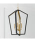 The Maren 4-Light Pendant in Flat Black and Matte Brass is a striking addition to any home. Its sleek silhouette is defined by clean lines and an open-air frame, making it a perfect blend of modern and classic design elements. The flat black painted mango wood exterior contrasts beautifully with the matte brass interior, creating a sophisticated and timeless look. This pendant light is designed to be a focal point, drawing attention with its unique intersecting arms and warm metallic glow.