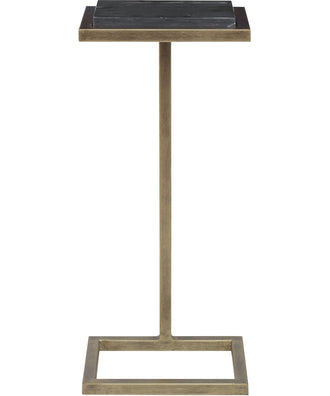 This elegantly designed martini table will be perfect beside your favorite chair. Finished in an aged gold, it is topped with a thick black honed marble. The marble is sealed to prevent staining.