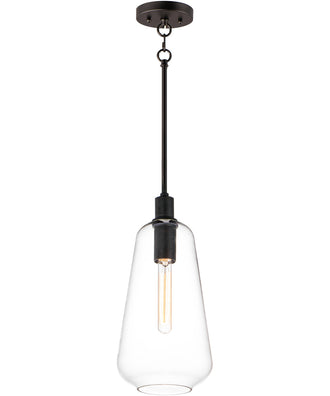 The Babylon 1-Light Pendant in Black is a statement piece that brings a touch of modern elegance to any room. Its clear glass shade features a unique elongated and undulating shape, creating a sophisticated and contemporary look. The black finish of the metalwork adds a sleek and stylish touch, making it a versatile addition to various interior design themes. This pendant light is part of the esteemed Babylon Collection by Maxim, known for its high-quality craftsmanship and innovative designs.