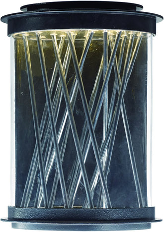 The 14" Bedazzle LED Outdoor Wall Lantern is a masterpiece of modern lighting design. Featuring a unique oval shape, this fixture stands out with its creative arrangement of polished rods. These rods are meticulously placed in an intricate pattern, creating a dazzling visual effect that is sure to enhance the aesthetic appeal of any outdoor space. The combination of Texture Ebony and Polished Chrome finishes adds a touch of sophistication and elegance, making this lantern a perfect addition to contemporary and modern home exteriors.